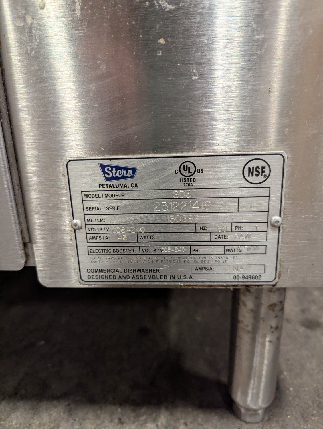 Stero SD3 Pass-Thru Dishwasher W/Dish Tables & Pre-Rinse Faucet