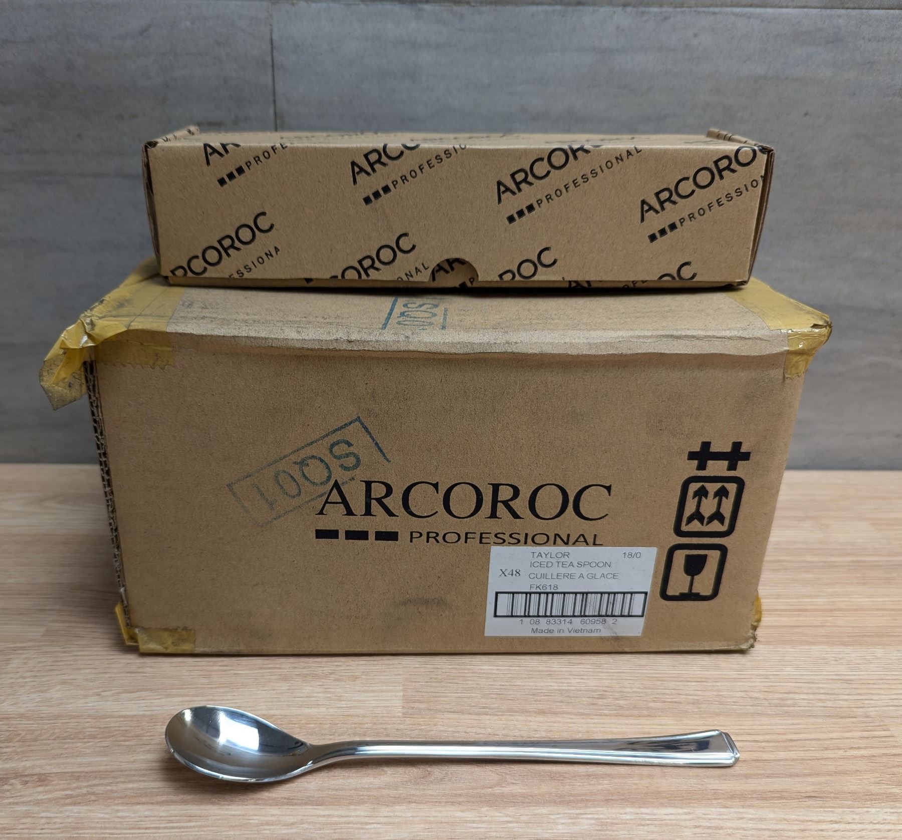 Taylor 7-3/8'' Iced Tea Spoons, Arcoroc FK618 - Lot of 48