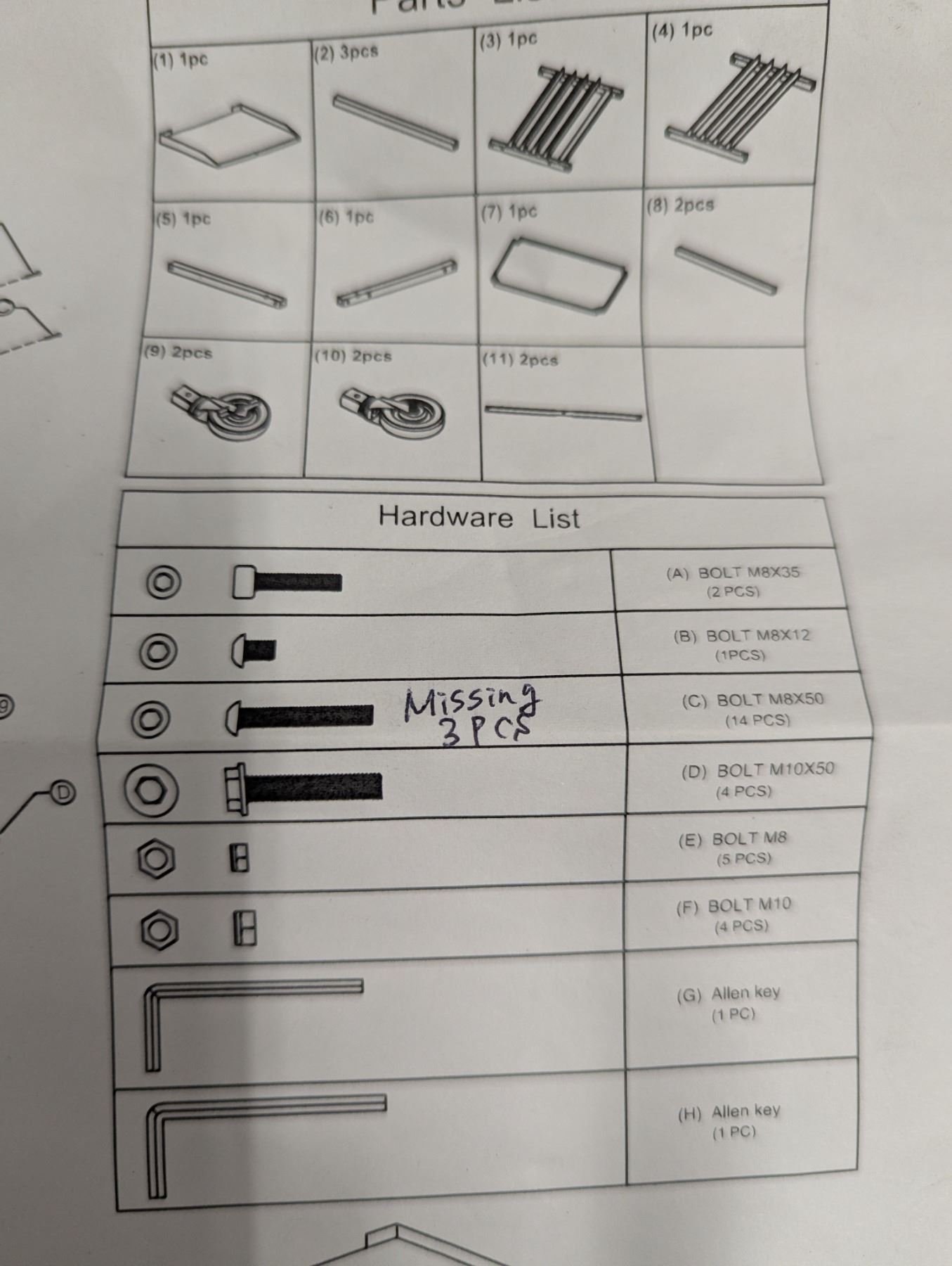 [New, Missing 3 Bolts (M8X50),] 39" x 34" x 35"