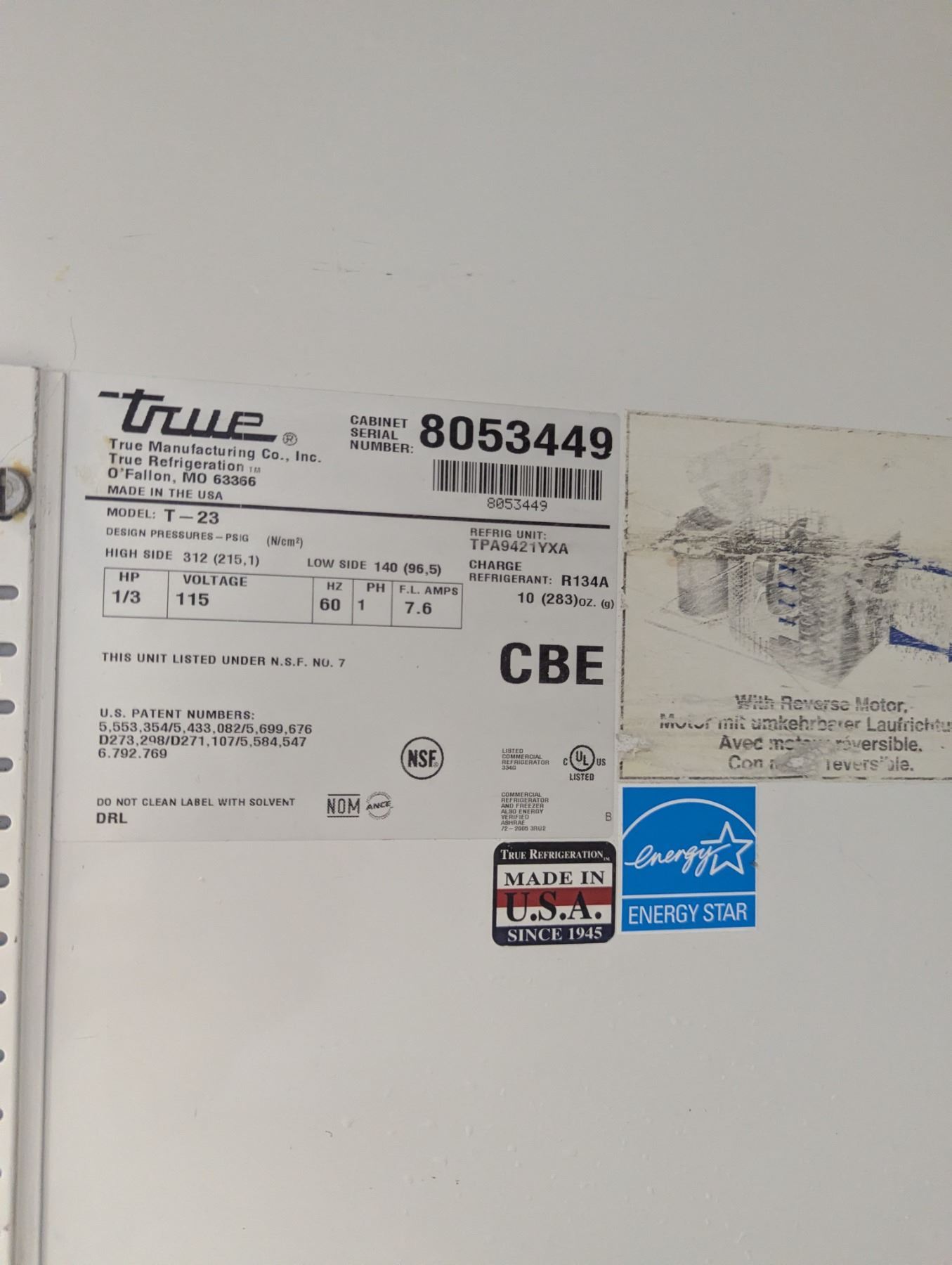 [Used, Tested/Working,] Serial# 8053449, 27" x 29-1/2" x 84", 115V/60Hz/1Ph