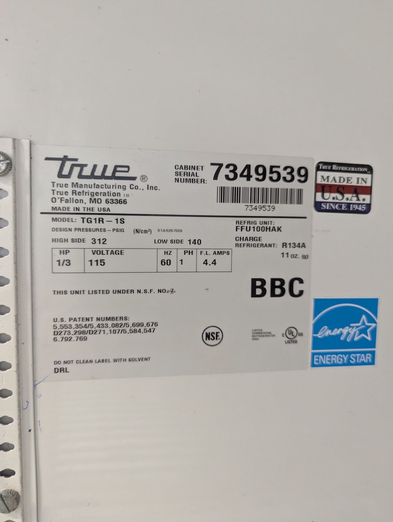 [Used, Tested/Workig,] Serial# 7349539, 29" x 34-5/8" x 84-3/16", 115V/60Hz/1Ph