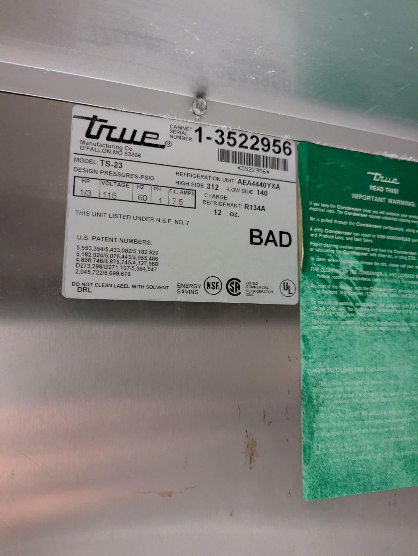 True TS-23 27" Single Door Stainless Cooler | 2956/RBD,LBD?