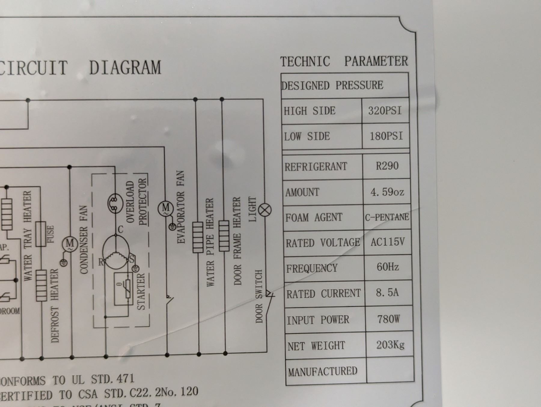 [Used, Tested/Working,] Serial# 6912171422020205, 54" x 32-1/4" x 82-1/4", 115V/60Hz/1Ph