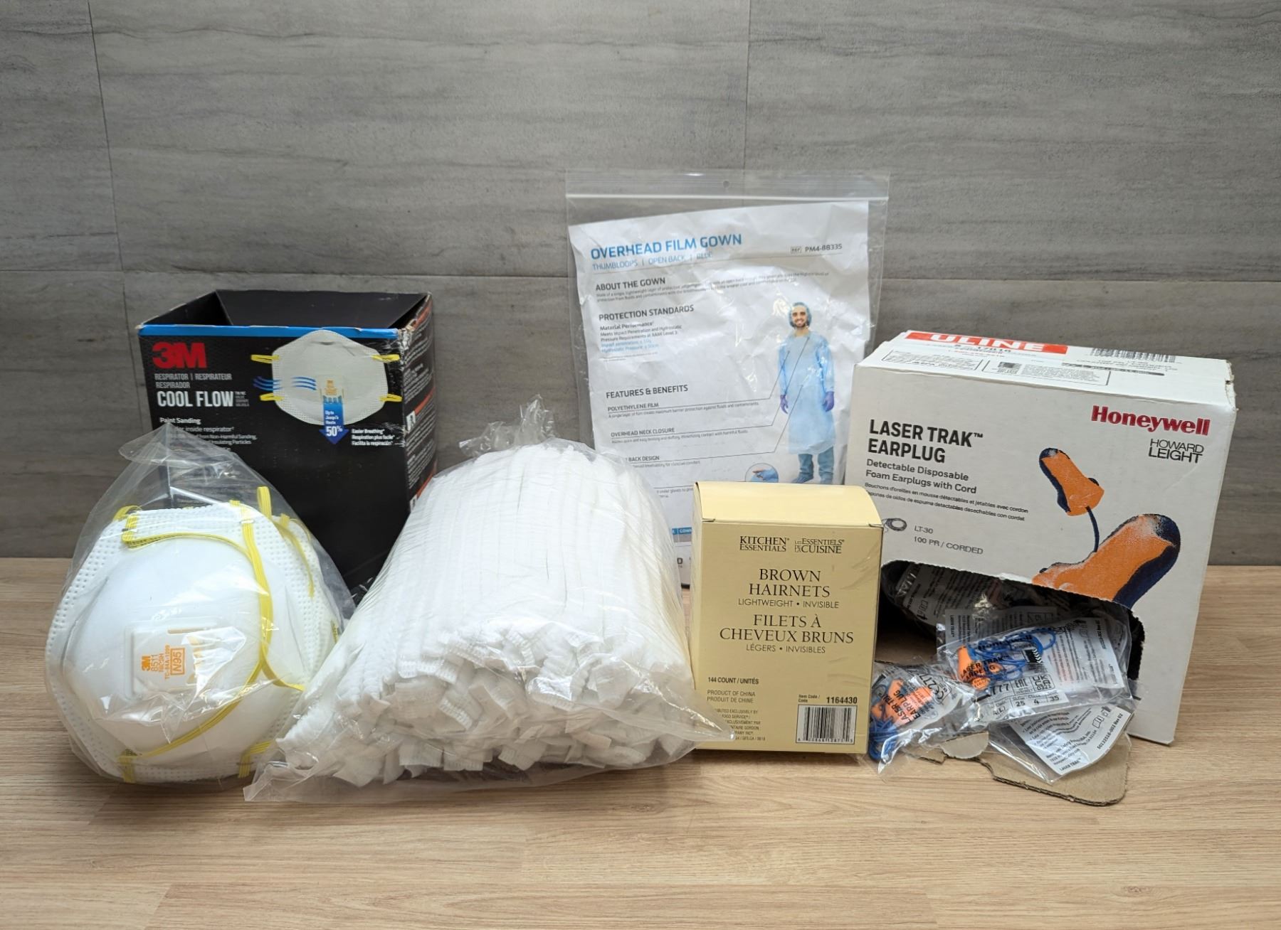 [New,] Hair Net, Earplug,Res[oratpr,Gown