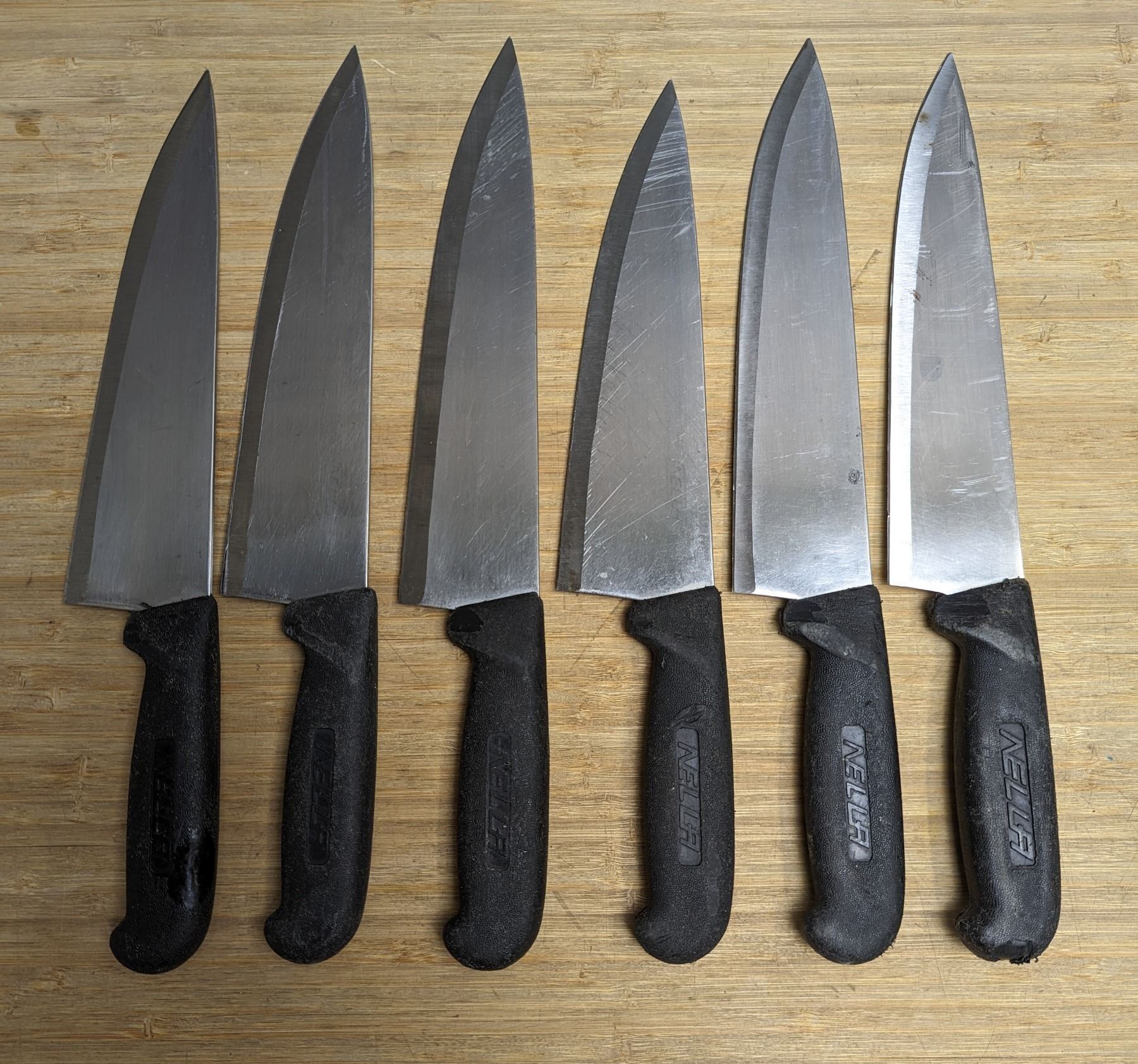 Used, Sharpened Cook Knives, Black Handles - Lot of 6