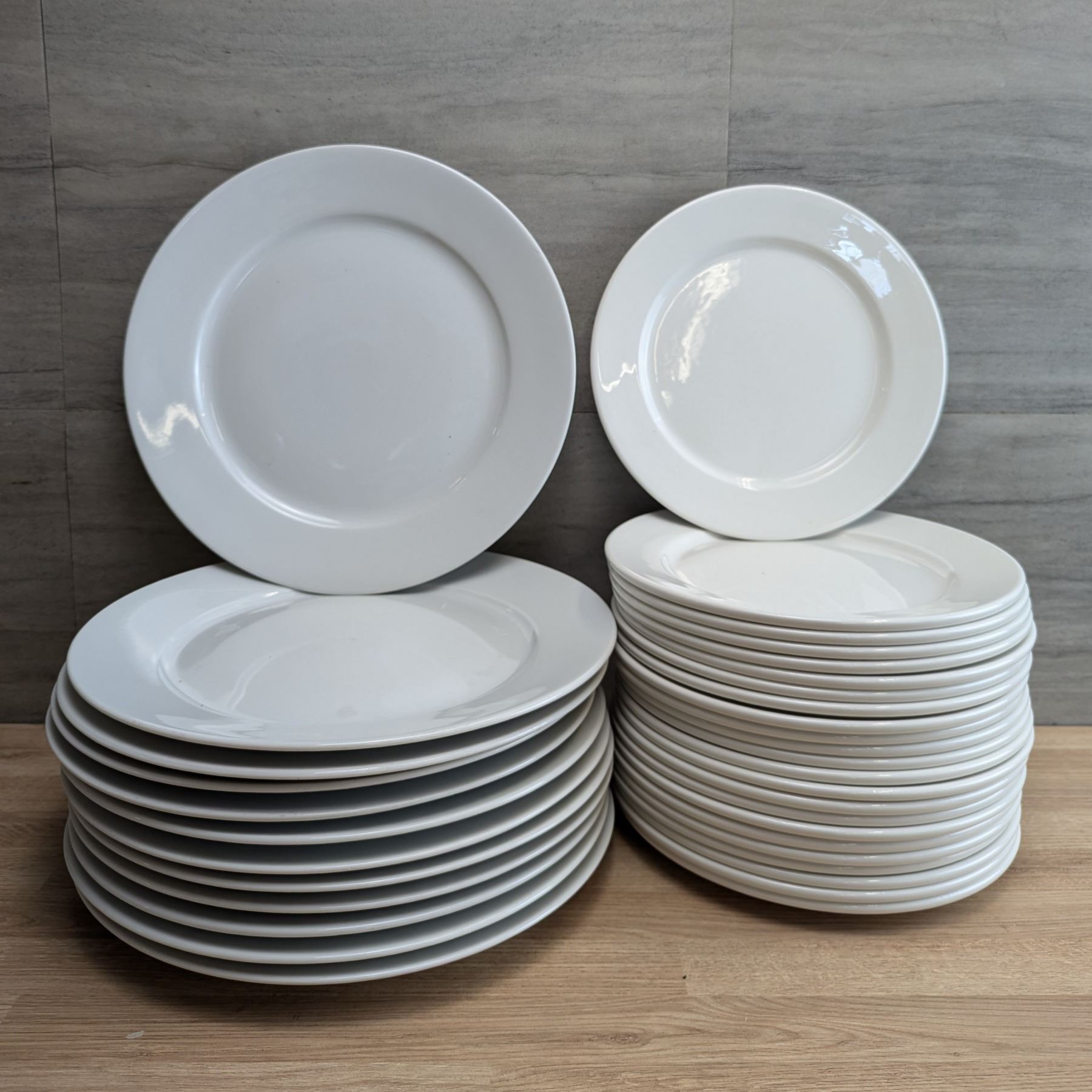Various Sizes of Round White Plates - Lot of Approx. 50pcs &CN-2/Front Pallet