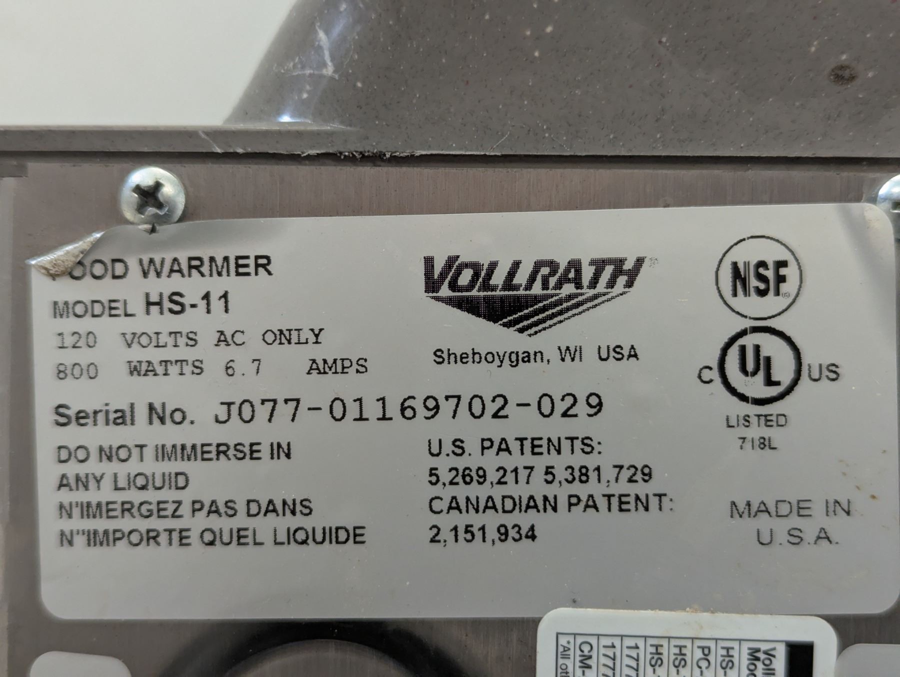 Vollrath HS-11 Food Warmer | Urack/2029