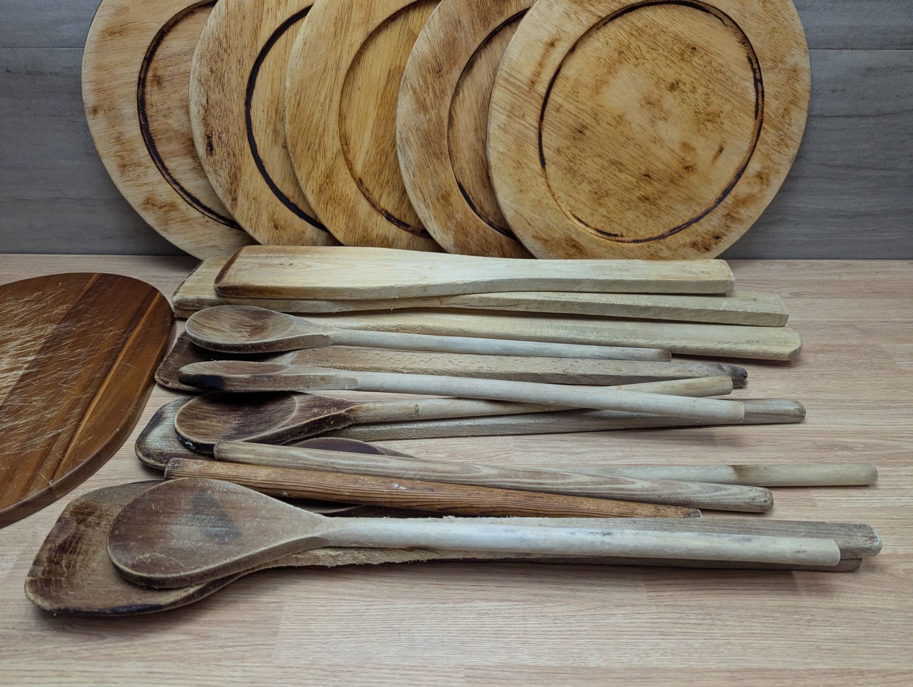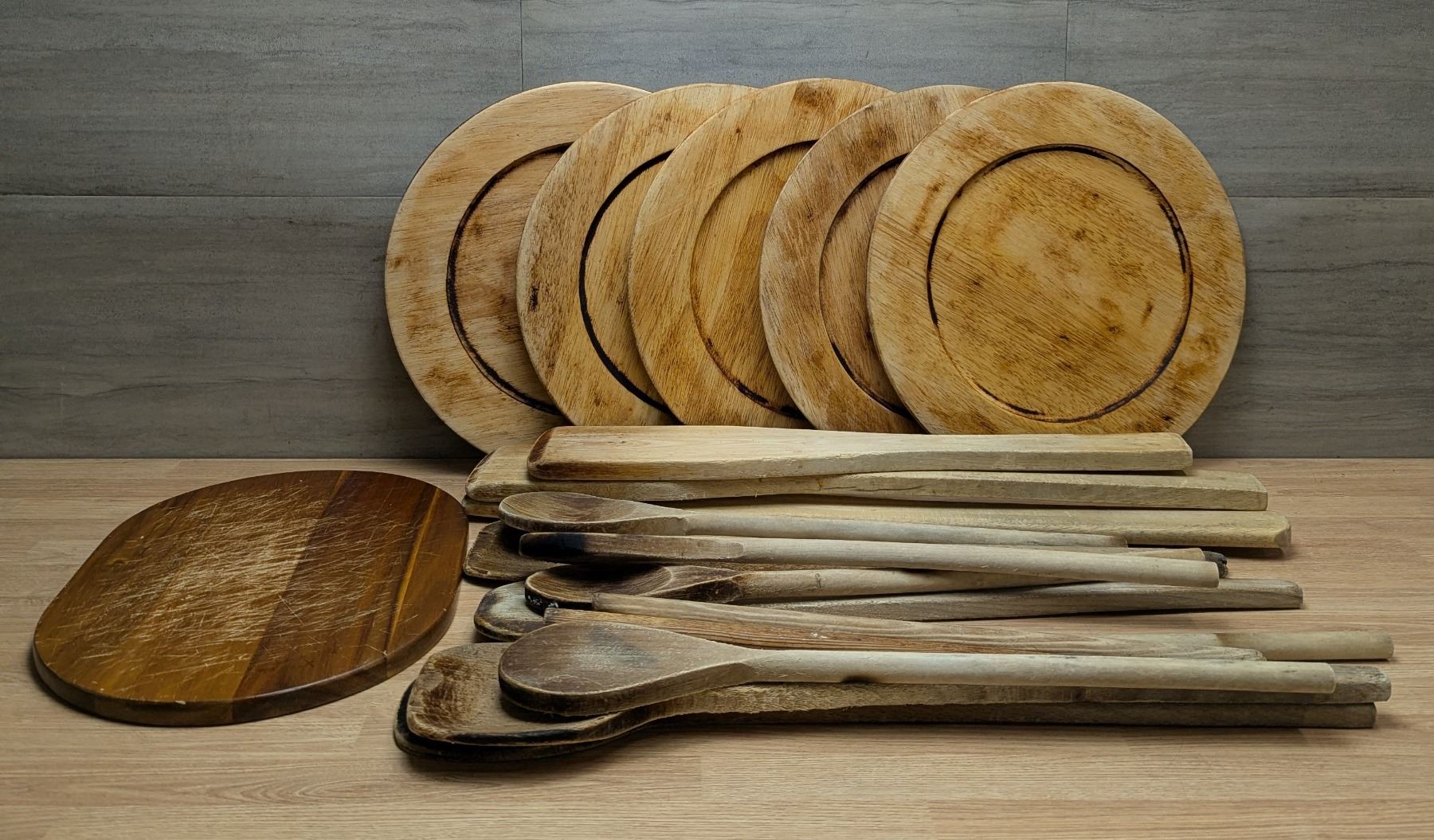 Wood Platters, Spoons & Spatulas - Lot of Approx. 20pcs