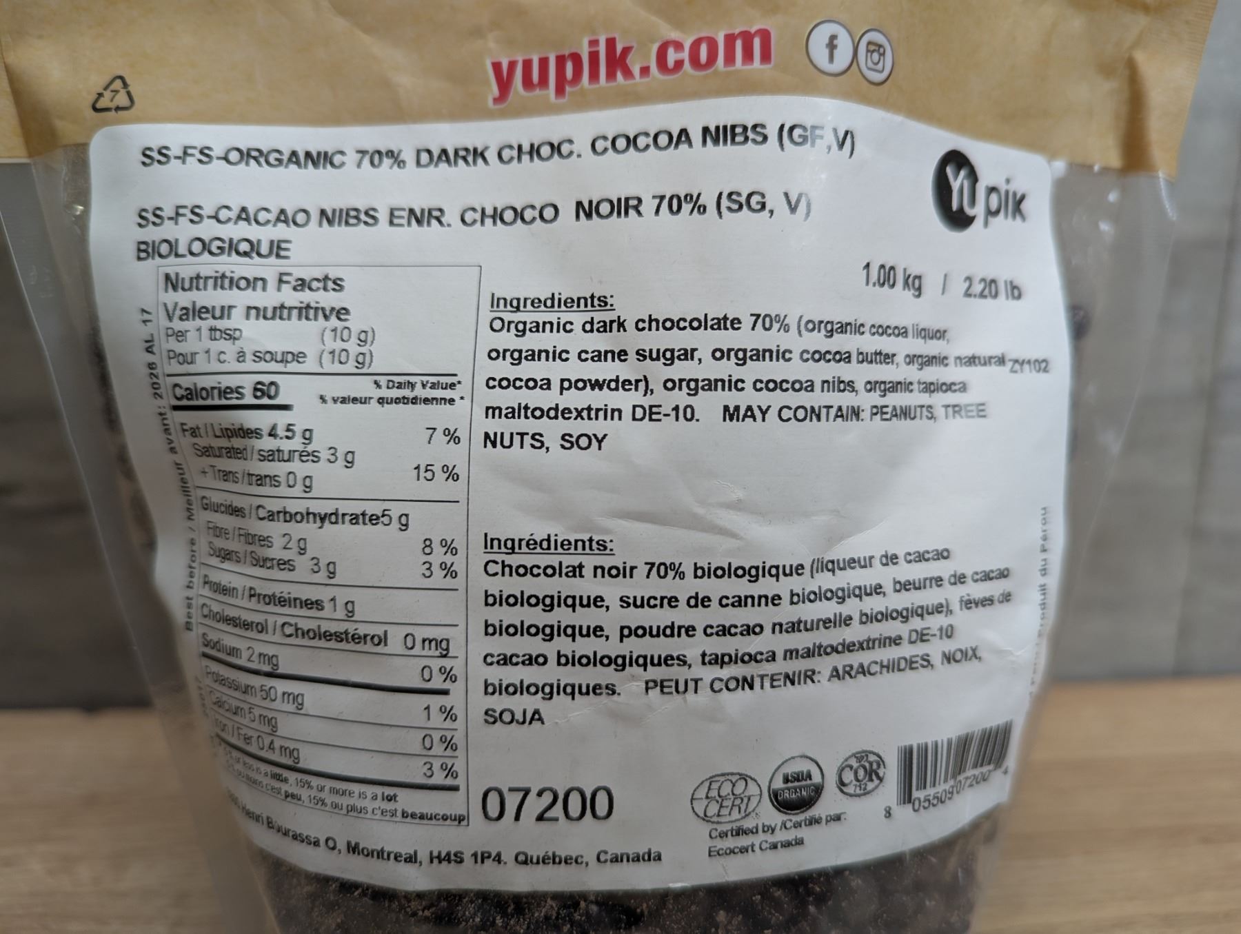Yupik Organic 70% Dark Chocolate 1Kg |Cooler3